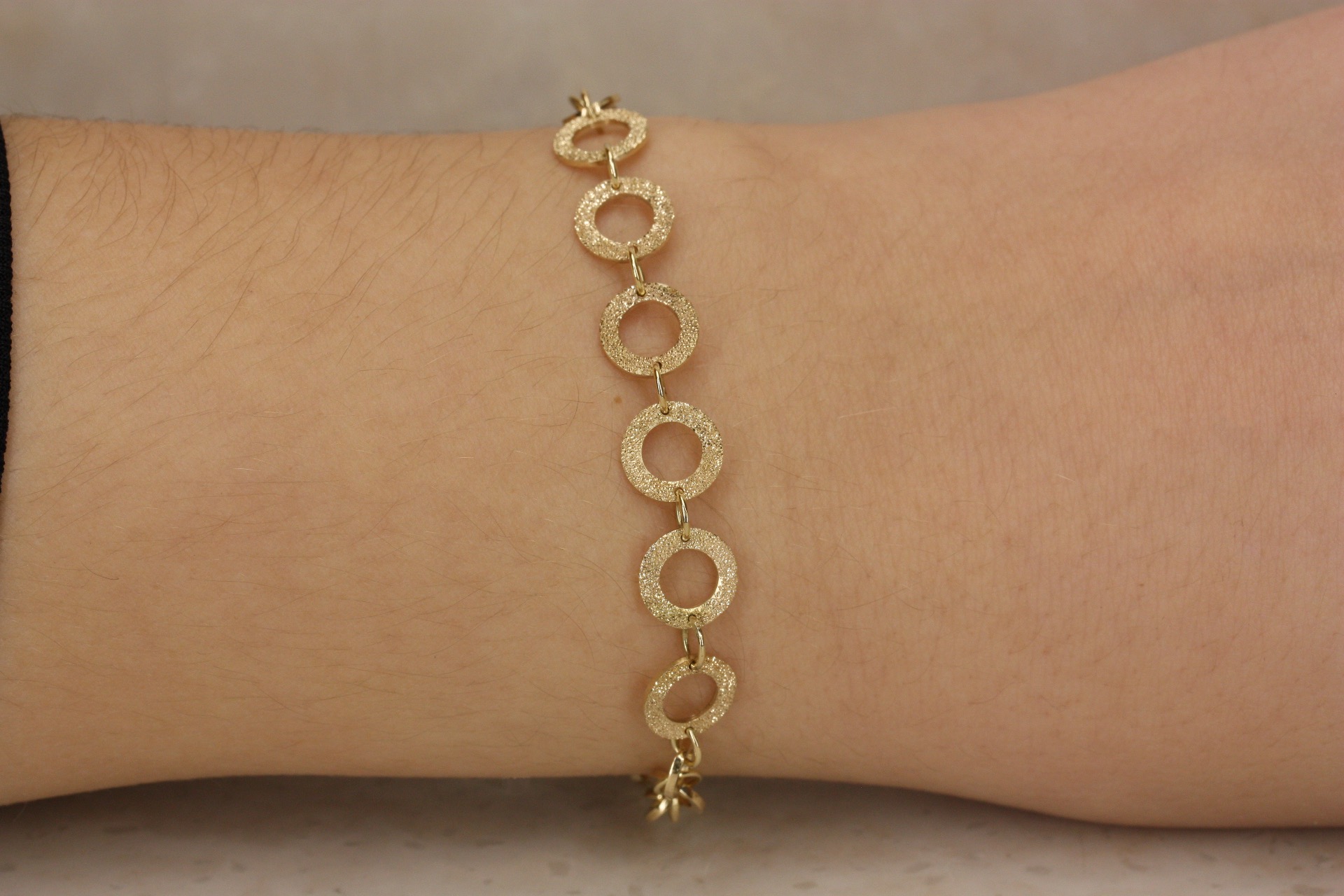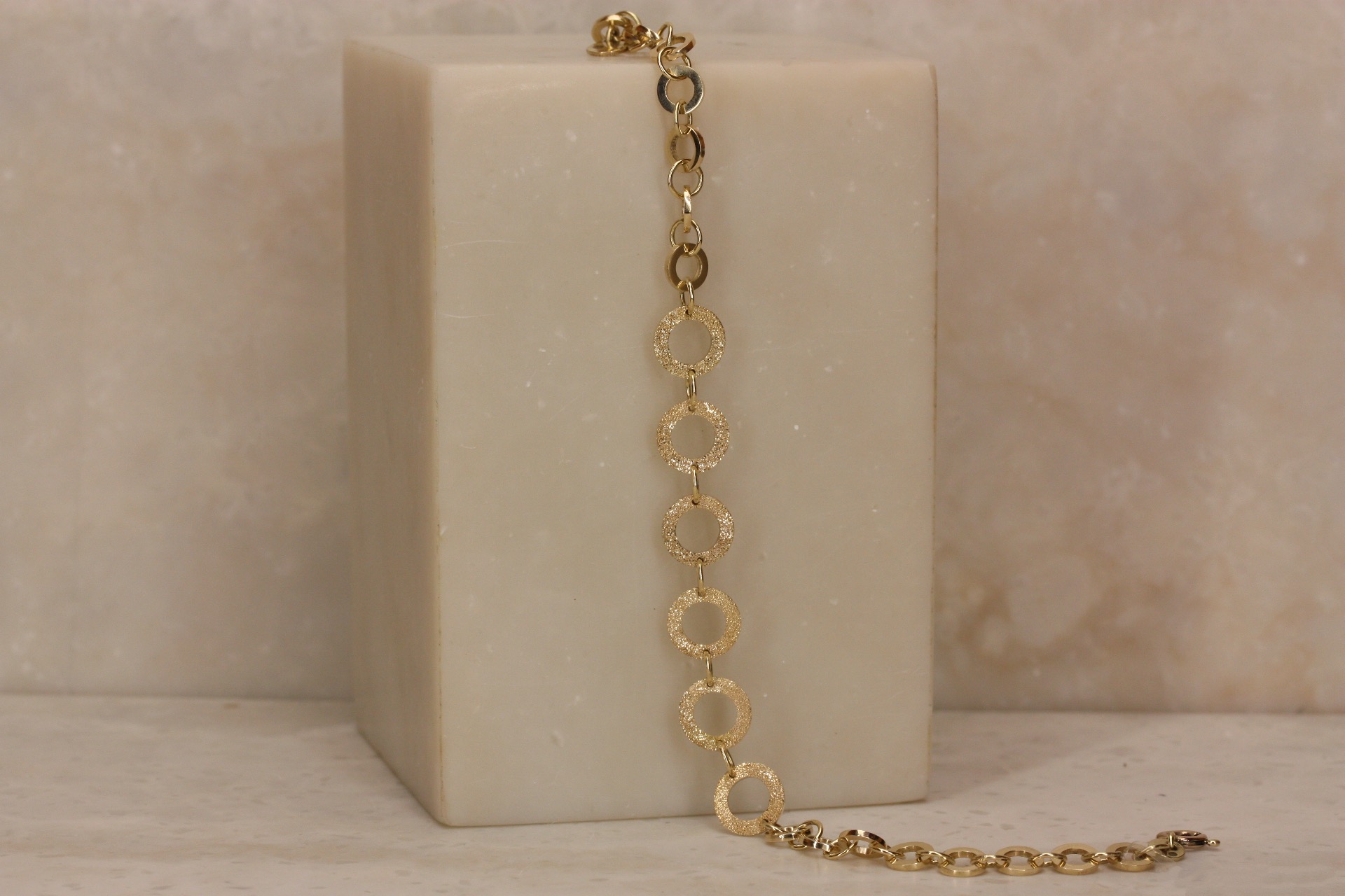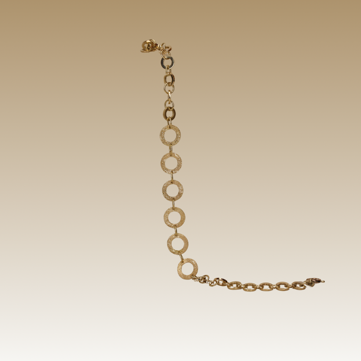 Schakelarmband in 14 krt geelgoud met gediamanteerde structuur.