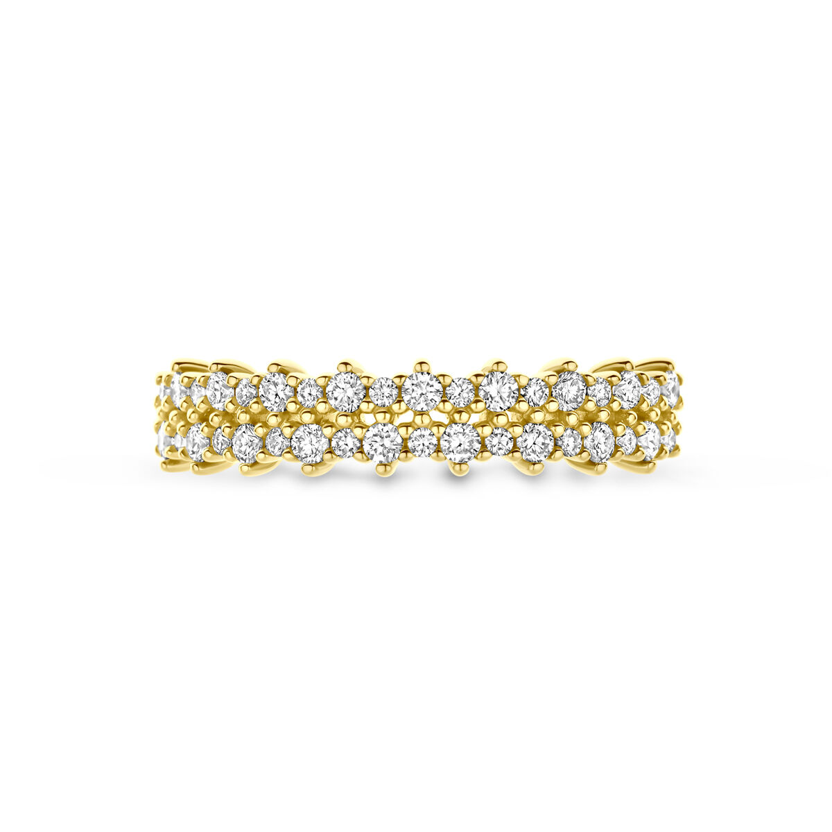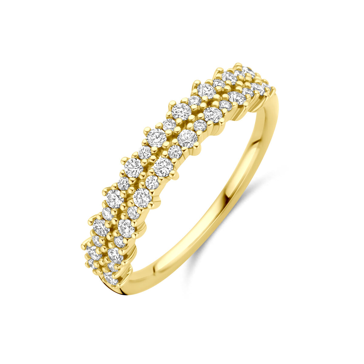 14k Geelgouden ring uitgevoerd met diamant. De ring heeft een breedte van 4.5mm. Het totale diamantgewicht is 0.38ct.